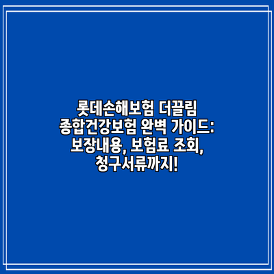 ✅ 롯데손해보험 더끌림 종합건강보험의 자세한 보장내용, 보험료 계산, 청구방법 등 모든 정보를 한눈에 확인하세요!