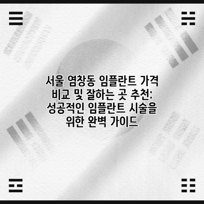 서울 염창동 임플란트 가격 비교 및 잘하는 곳 추천: 성공적인 임플란트 시술을 위한 완벽 가이드
