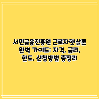 서민금융진흥원 근로자햇살론 완벽 가이드: 자격, 금리, 한도, 신청방법 총정리