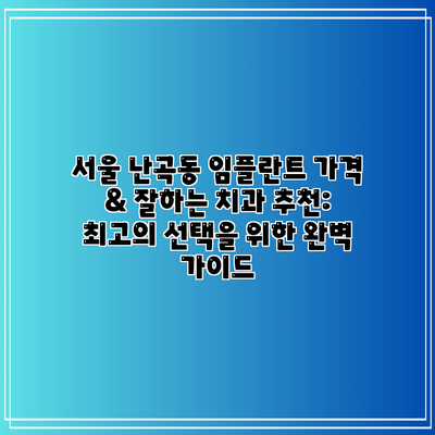 서울 난곡동 임플란트 가격 & 잘하는 치과 추천: 최고의 선택을 위한 완벽 가이드