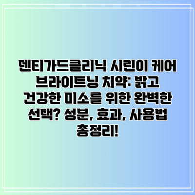 덴티가드클리닉 시린이 케어 브라이트닝 치약: 밝고 건강한 미소를 위한 완벽한 선택? 성분, 효과, 사용법 총정리!