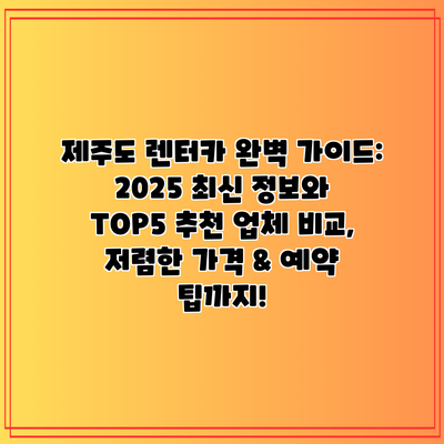 제주도 렌터카 완벽 가이드: 2025 최신 정보와 TOP5 추천 업체 비교, 저렴한 가격 & 예약 팁까지!