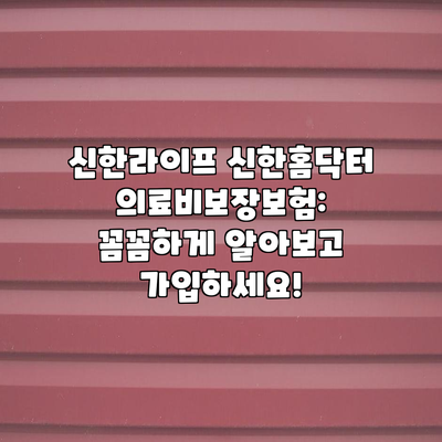 신한라이프 신한홈닥터 의료비보장보험: 꼼꼼하게 알아보고 가입하세요!