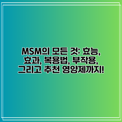 MSM의 모든 것: 효능, 효과, 복용법, 부작용, 그리고 추천 영양제까지!