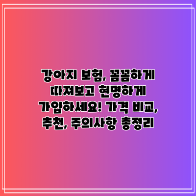 강아지 보험, 꼼꼼하게 따져보고 현명하게 가입하세요! 가격 비교, 추천, 주의사항 총정리