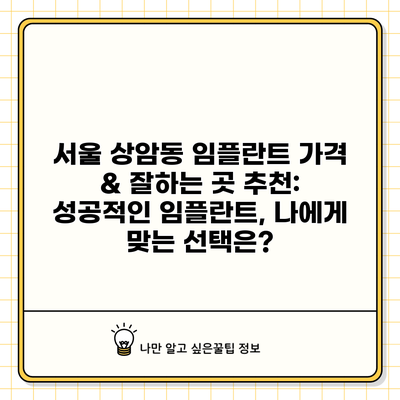 서울 상암동 임플란트 가격 & 잘하는 곳 추천: 성공적인 임플란트, 나에게 맞는 선택은?
