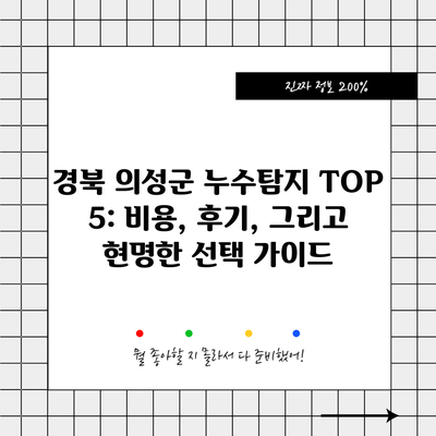 경북 의성군 누수탐지 TOP 5: 비용, 후기, 그리고 현명한 선택 가이드