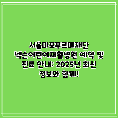 서울마포푸르메재단 넥슨어린이재활병원 예약 및 진료 안내: 2025년 최신 정보와 함께!