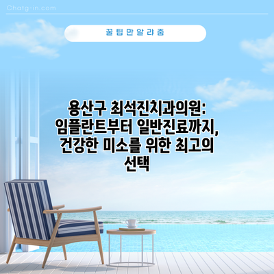 용산구 최석진치과의원: 임플란트부터 일반진료까지, 건강한 미소를 위한 최고의 선택